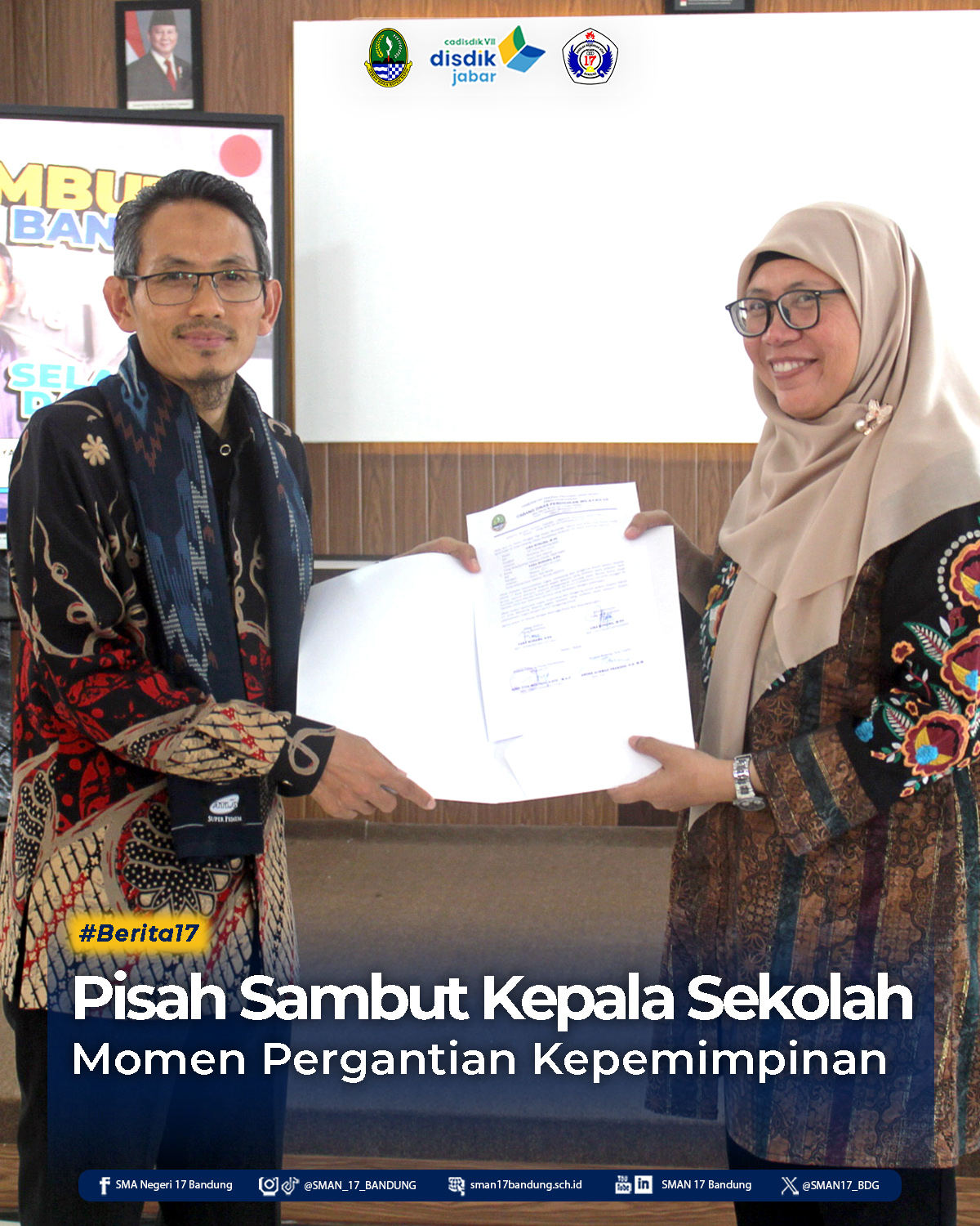 SMAN 17 Bandung menggelar kegiatan Pisah Sambut Kepala Sekolah pada Kamis, 6 November 2025. Acara ini menjadi momen penting sebagai bentuk penghormatan dan apresiasi bagi kepala sekolah sebelumnya, sekaligus penyambutan bagi pemimpin baru yang akan melanjutkan kepemimpinan di lingkungan sekolah.
