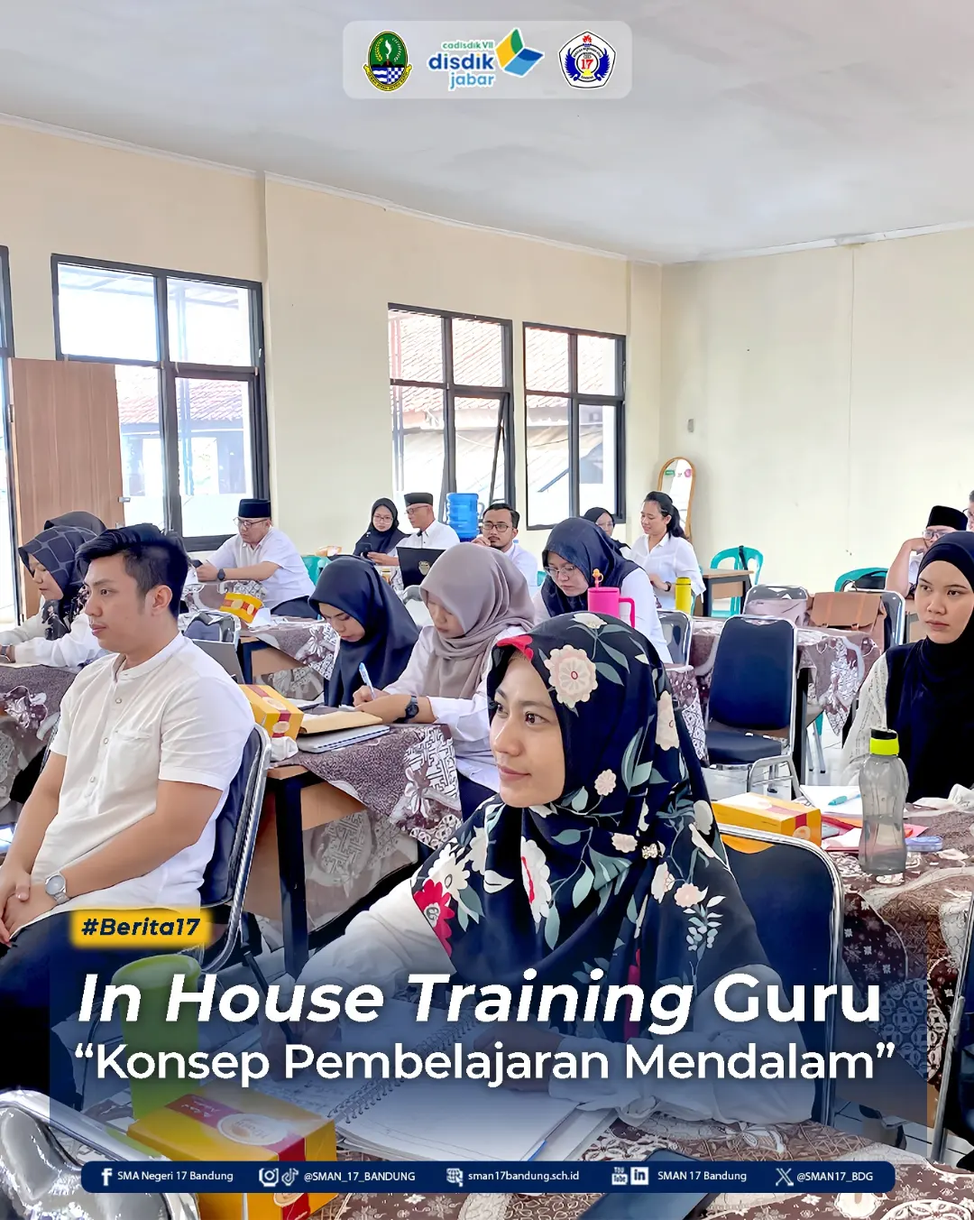 SMAN 17 Bandung menggelar kembali kegiatan IHT atau In House Training untuk meningkatkan kompetensi tenaga pendidik (guru). Kali ini pelatihan mengenai “Refleksi dan Tindak Lanjut pada Pembelajaran Mendalam" yang dilaksanakan pada 18 Juni 2025 di Aula sekolah.