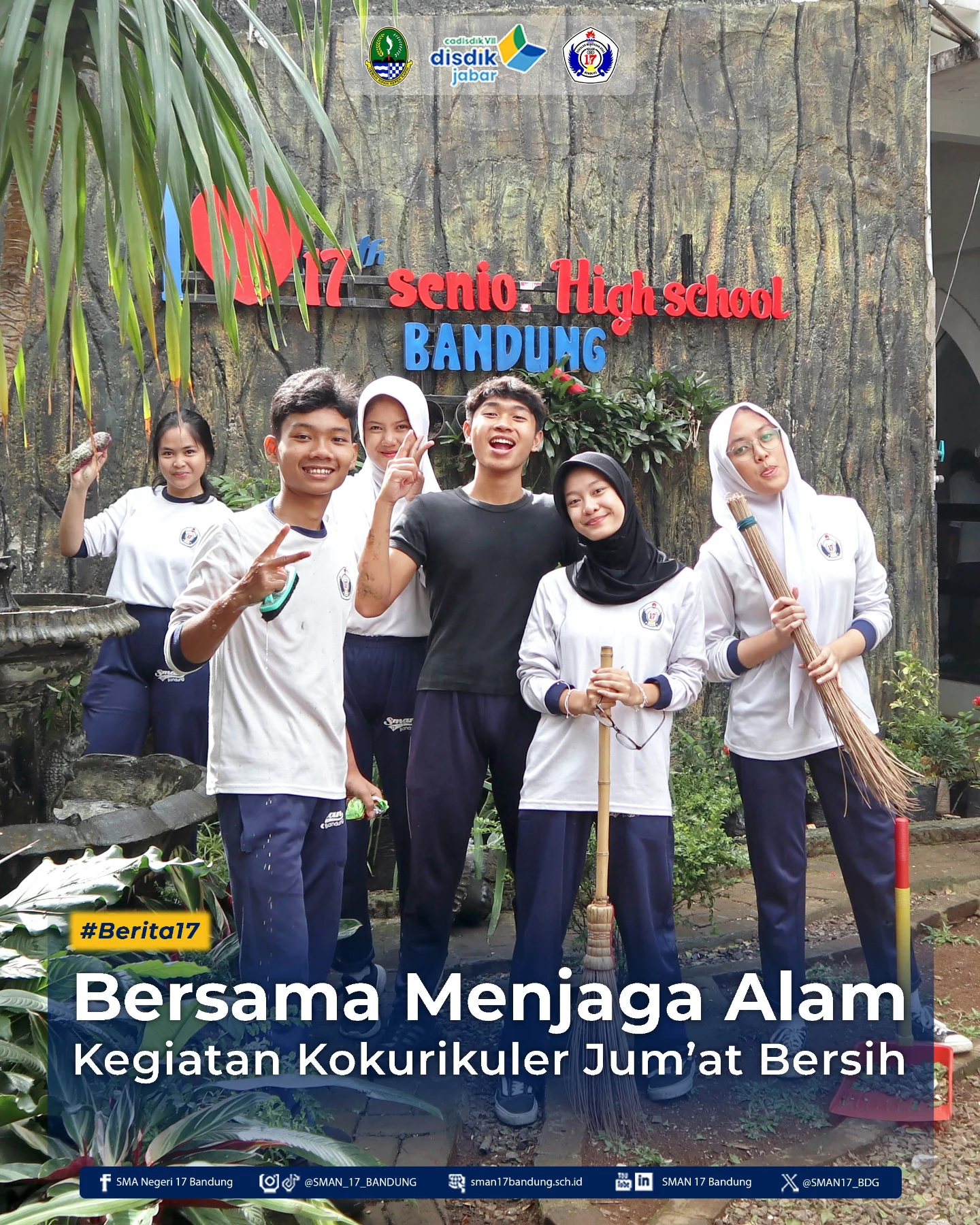 SMAN 17 Bandung mengadakan kegiatan Kokurikuler Jumat Bersih pada tanggal 14 November 2025. Program ini dikembangkan sebagai wujud kegiatan belajar di luar kelas (kokurikuler) untuk menumbuhkan kepedulian terhadap kebersihan dan kelestarian lingkungan. Sebelum dimulai, kegiatan diawali dengan pembiasaan pagi sholat dhuha dan mengaji bersama.