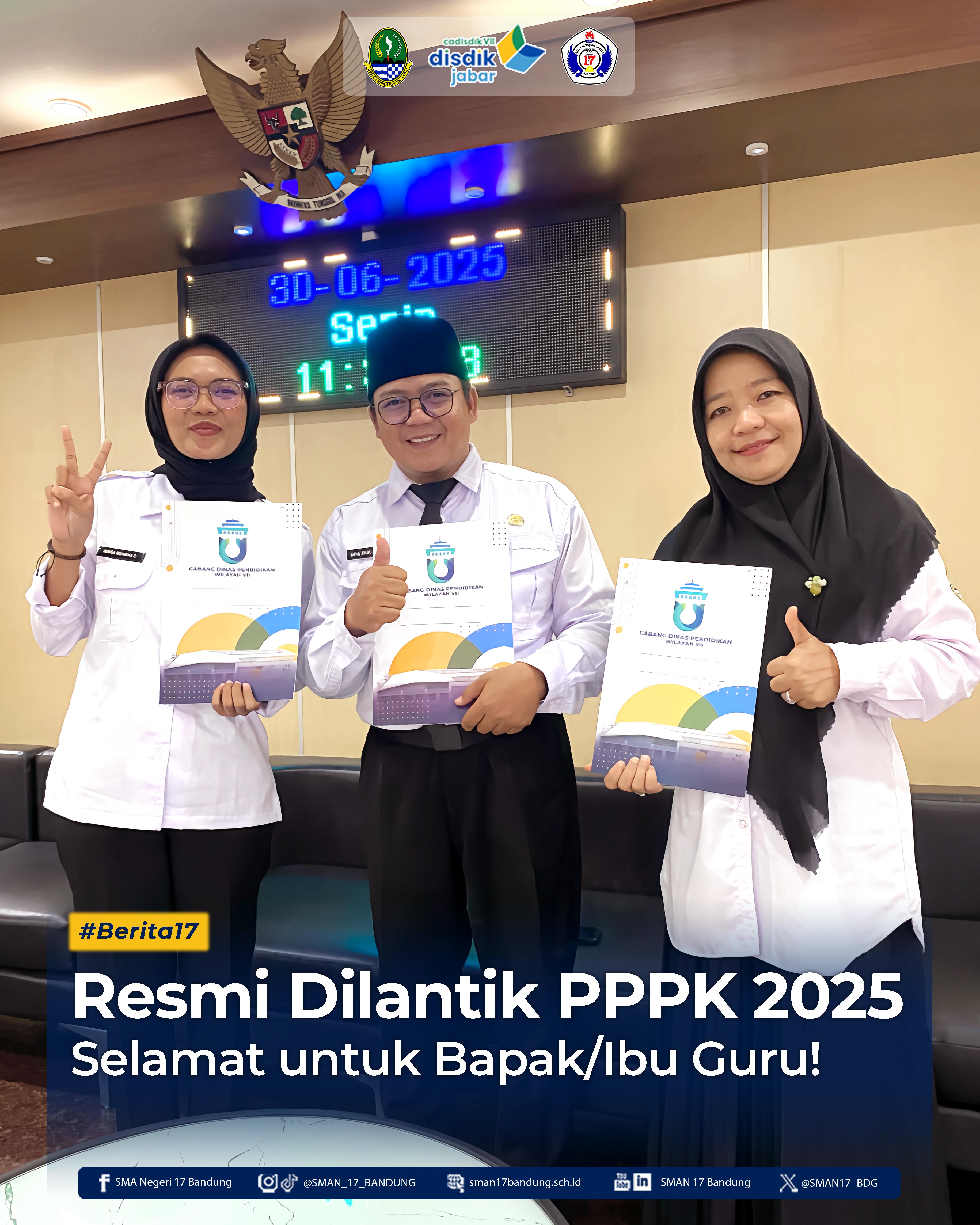 Kabar bahagia datang dari guru SMAN 17 Bandung. Beberapa di antaranya kini resmi dilantik sebagai Pegawai Pemerintah dengan Perjanjian Kerja (PPPK) Provinsi Jawa Barat.